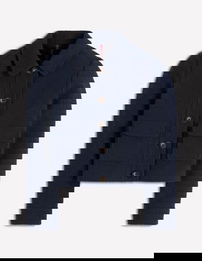 The blanket stitch coat is crafted from a plush wool blend, comes with a shawl collar and is shaped with a belt so it cocoons you to keep out the winter chill.