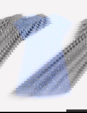 We spy with our little eyes: a tiered midi-length dress sporting a bold stripe and spot pattern, enhanced by two neat rows of brightly coloured tassels. Woven from pure cotton and lined, it's lightweight, cool and comfortable. Slim shoulder straps and an elasticated back are super-comfortable too.