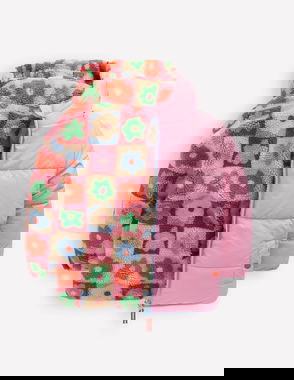Soft faux sherpa panels give snuggly softness to this quilted jacket. It has two zipped pockets to keep tiny treasures safe.