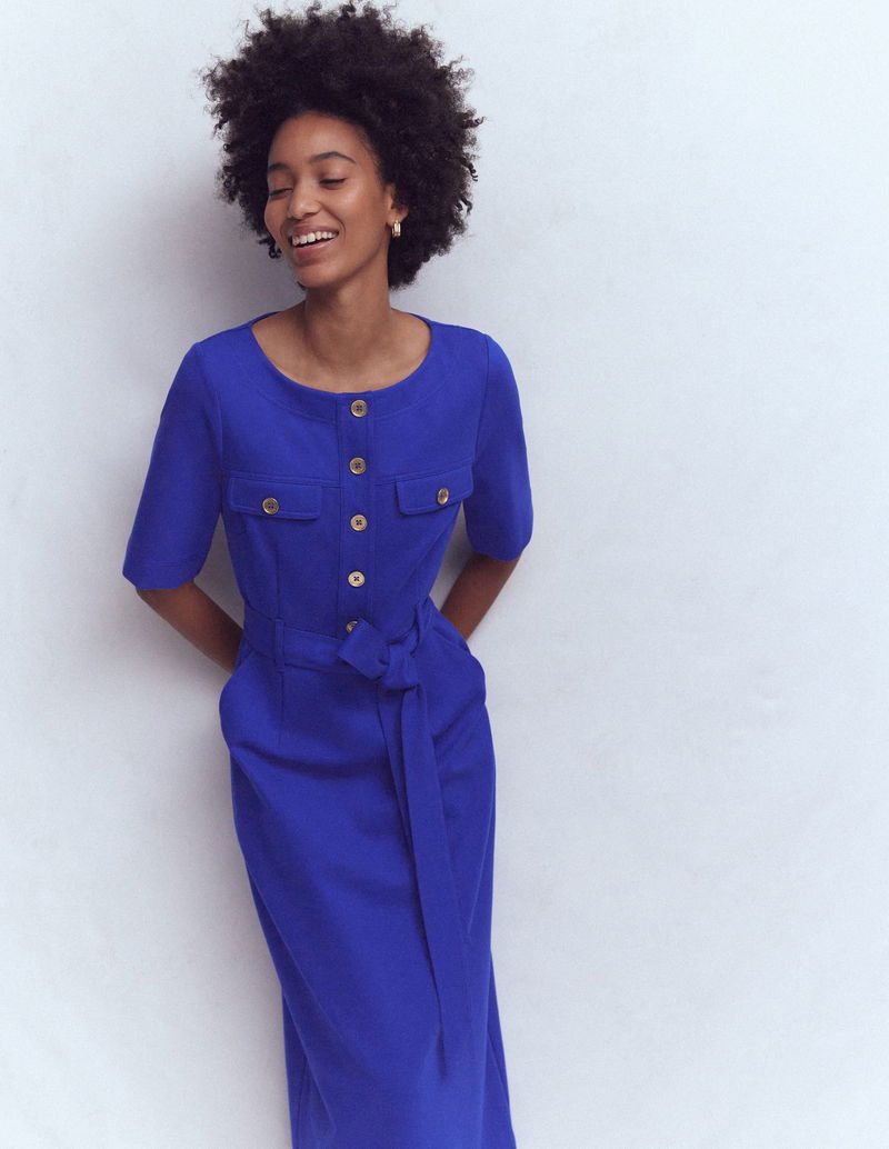 Bria Ponte Midi Dress-Bright Blue