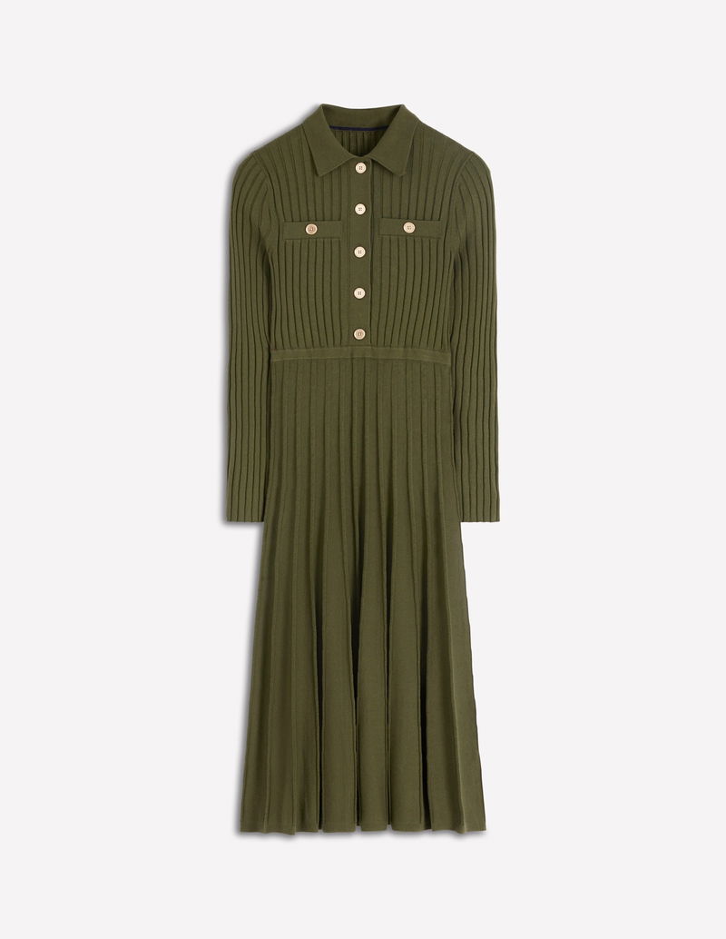 Brönte Knitted Rib Shirt Dress-Woodland Green