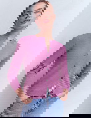 Cloud-soft cashmere brushed to make you feel warm and fuzzy. We’re proud partners of the Good Cashmere Standard® making these featherweight fibres responsibly sourced. A cardi that's the cream of the crop.