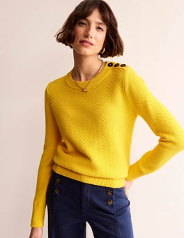 Primed for layering all year round, this jumper is a wardrobe staple in the making. It's made from pure cotton for maximum softness and layer-ability, then finished with deep ribbing and a trio of buttons on the shoulder.
