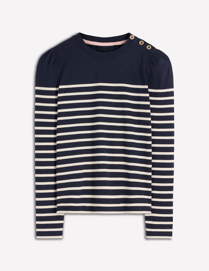 Button Shoulder Mariner-Navy And Ivory Stripe