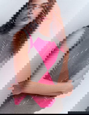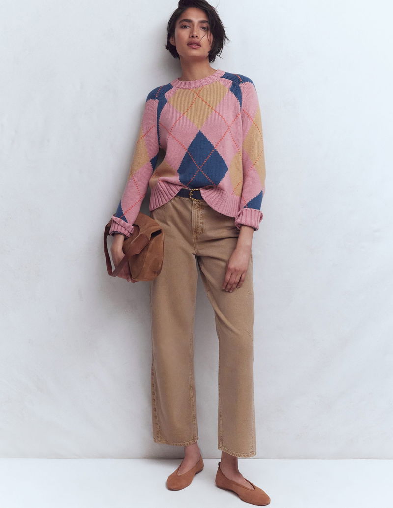 Camilla Cotton Argyle Jumper-Pink Argyle