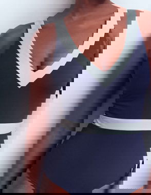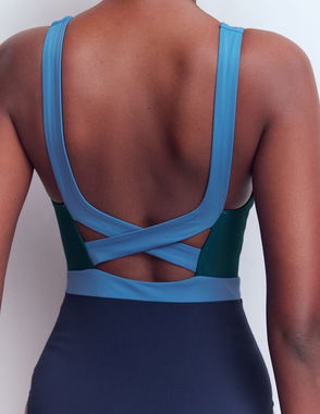 Campania Cross-back Bikini Top-Navy, Green, Blue Colourblock