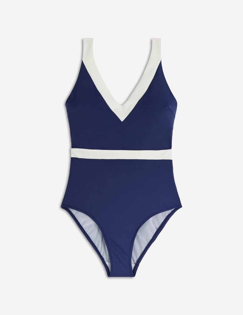 Campania Cross-back Swimsuit-Navy, Ivory Colourblock