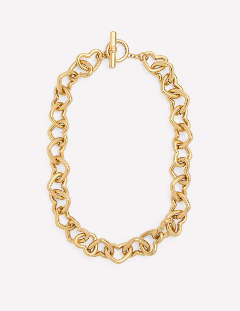 Chunky Heart Chain Necklace-Gold Colour