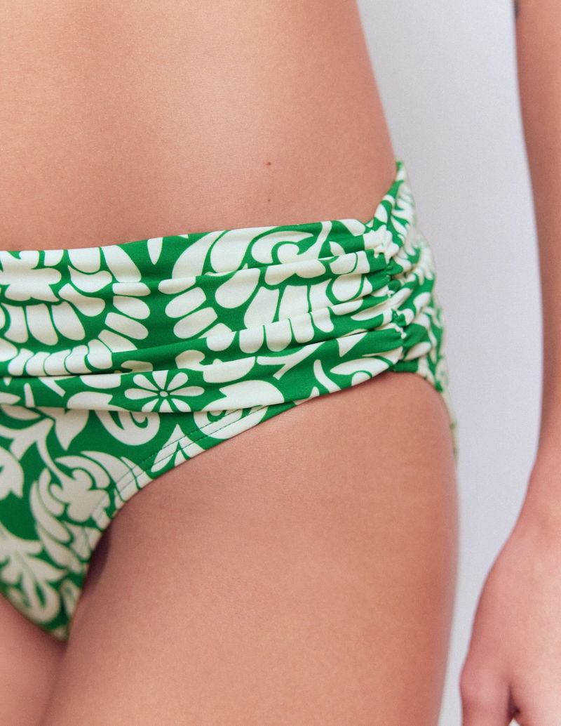 Classic Fold Bikini Bottoms-Rich Emerald, Ornate Floret