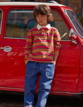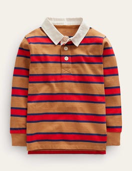 Keep budding sports-enthusiasts cosy in this stripy rugby shirt. The durable cotton fabric is ready for a tackle or two.