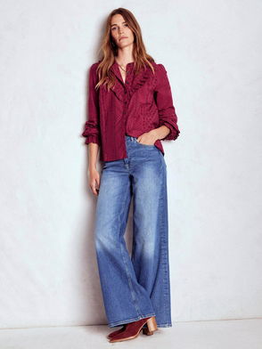 That tricky smart-casual dress code has met its match in this elegant, lightweight slub-cotton top. The broderie placket draws the eye, while the subtle gathers and long blouson sleeves flatter. Oh, and we added pompoms around the neck – just because.