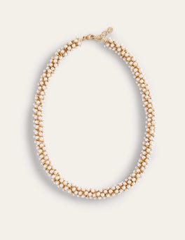 Statement jewellery pieces like this clustered faux pearl necklace add interest to even the most simple of looks.