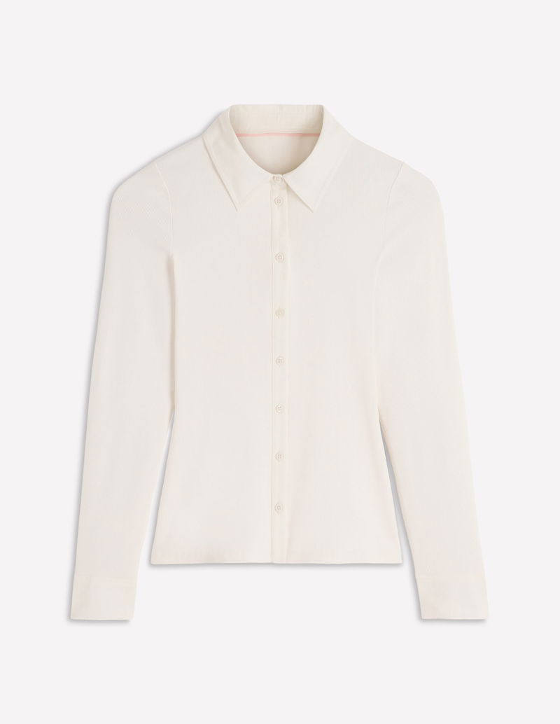 Collared Button Through Top-Ivory