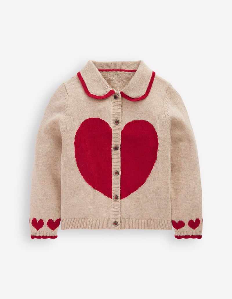 Collared Logo Cardigan-Chinchilla Melange Heart