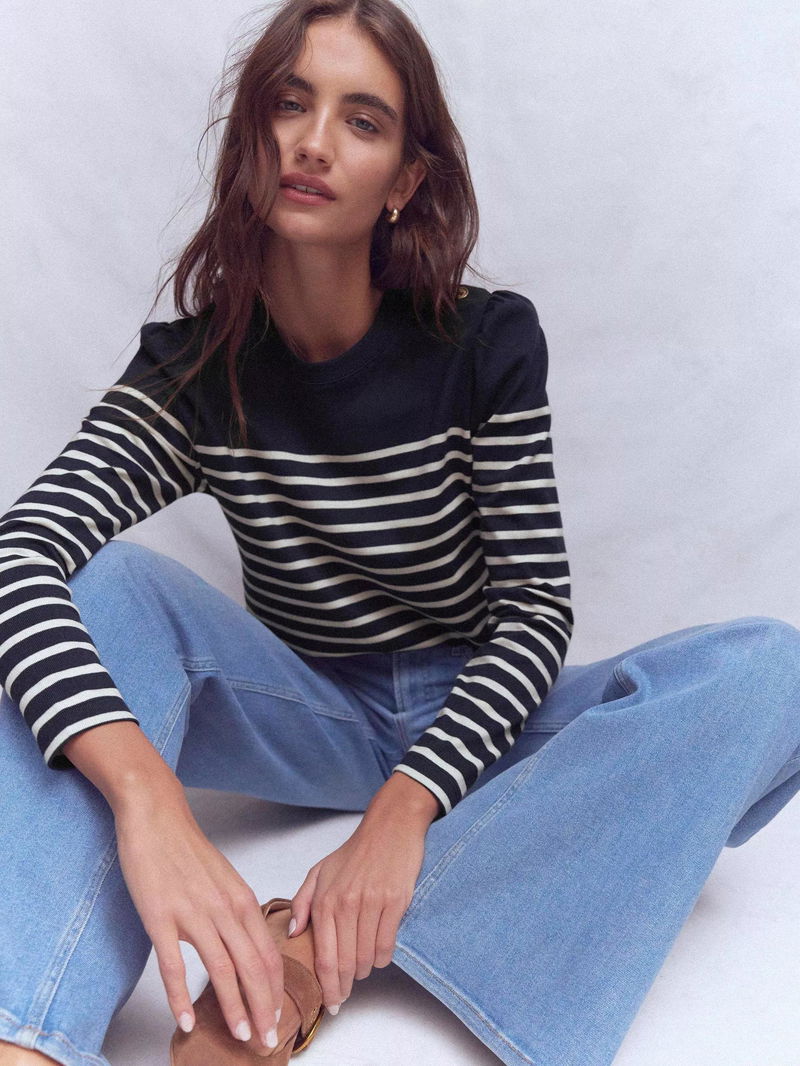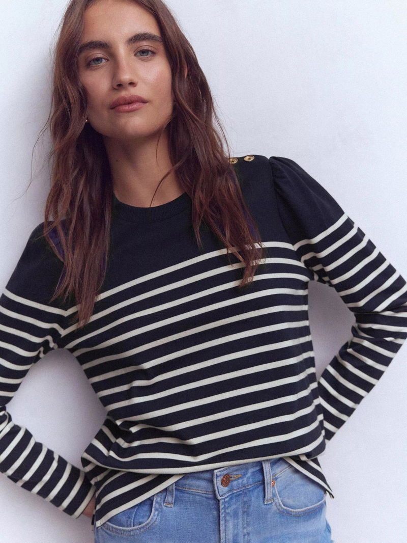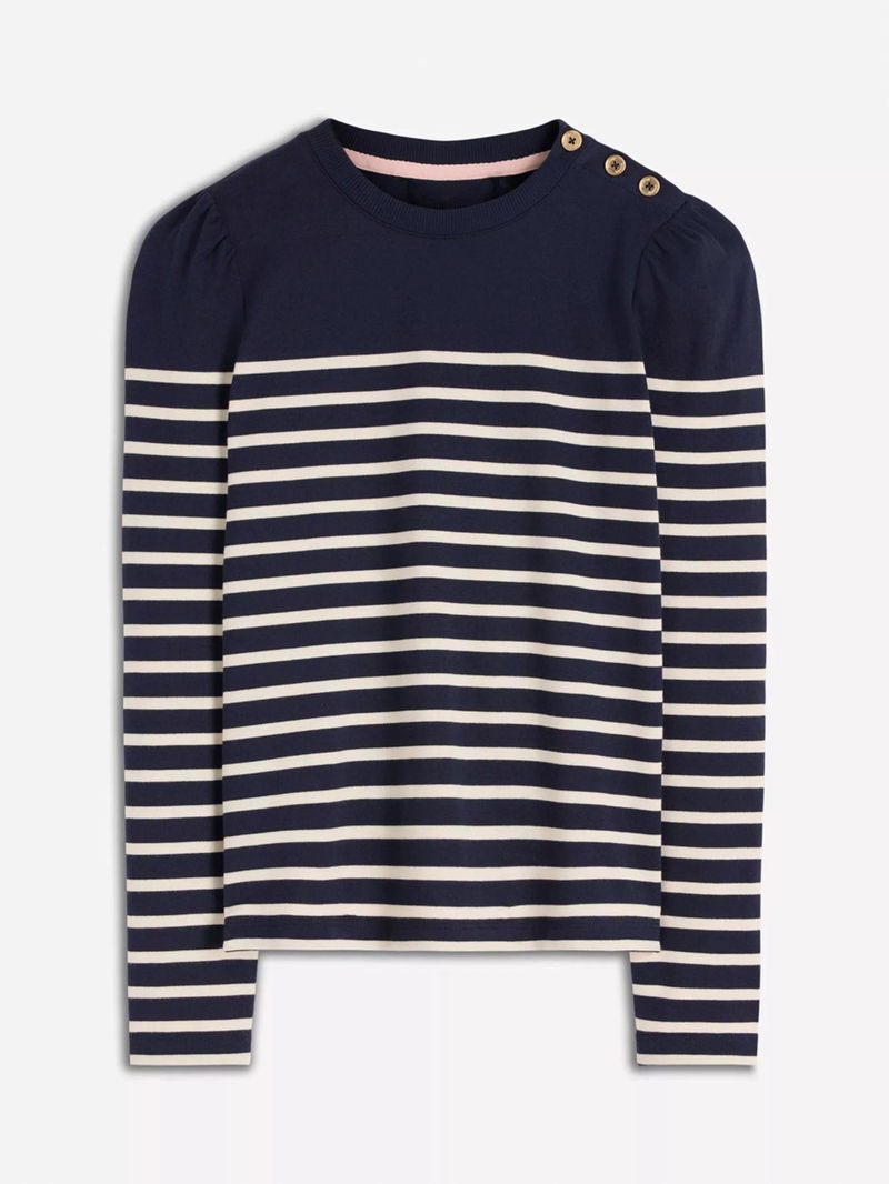 Boden love stripes and buttons, so they've added both to this nautical-inspired top. It's crafted from 100% cotton with subtle puff sleeves. This style is perfect for weekend wanderings.