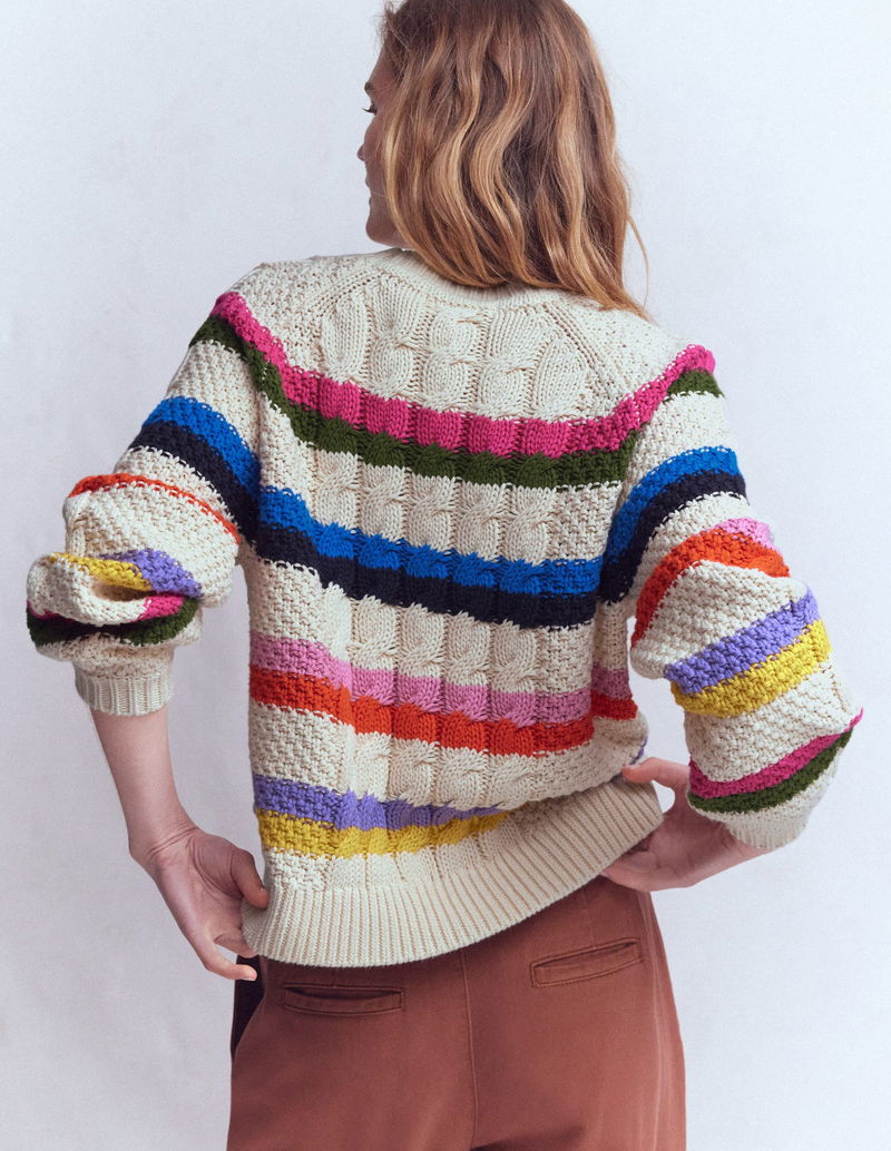 Cotton Cable Jumper-Warm Ivory, Rainbow
