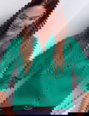 Hit pause on summer florals (for a moment) and embrace a preppy vibe with the cotton Henley T-shirt.