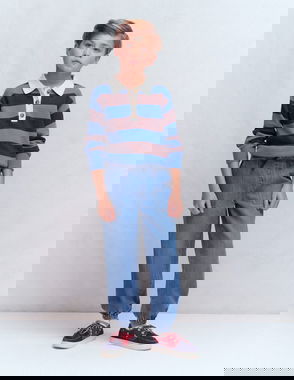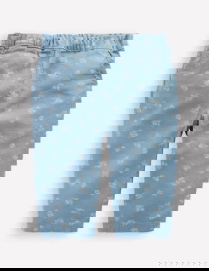 Cotton Pull-on Trousers-Blue And Ivory Stripe