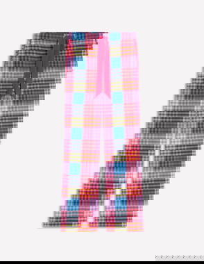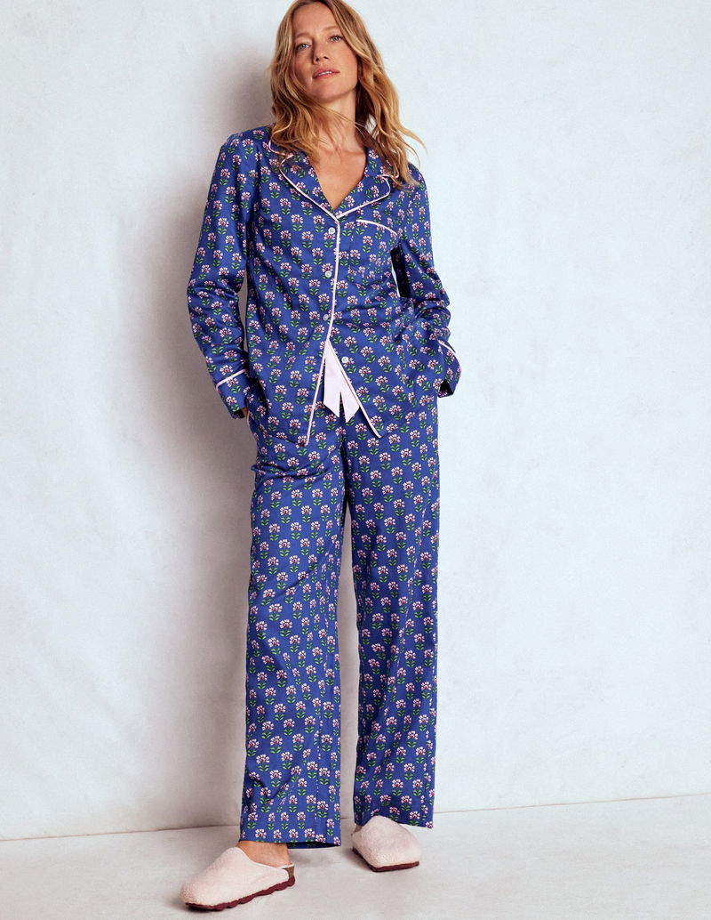 Cotton Pyjama Trousers-Bright Blue, Woodblock Flower