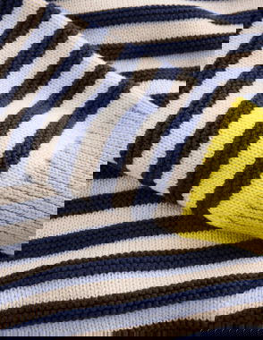 Crew Neck Knitted Jacket-College Navy/Soft Ivory Stripe