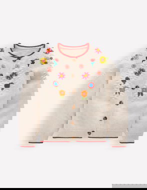We all know who won the race between the tortoise and the hare. But what about a race between a tortoise and an owl? We'll let you be the judge of these cotton blend cardigans. Hand-stitched crochet characters make this piece fun, while ribbing on the cuffs and hem keeps everything in place for a comfortable fit. Now, where's that finish line?
