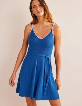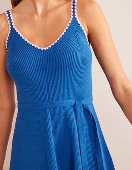 The ribbed finish of this knitted cotton midi dress gives it a figure-defining fit. It's finished with contrasting crochet tims and a self-tie belt to add definition to the waist if you want it.