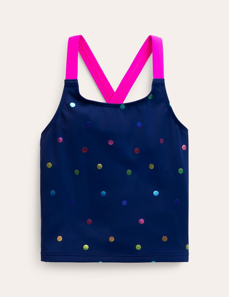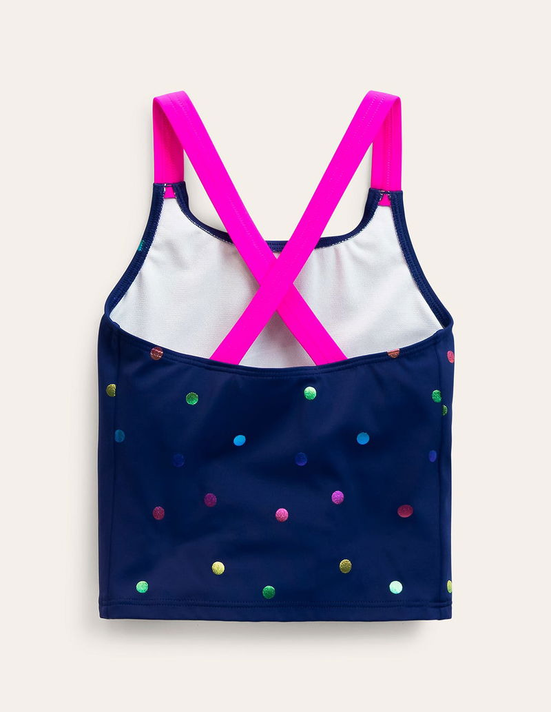 Cross-Back Tankini Top-Rainbow Foil Confetti Spot