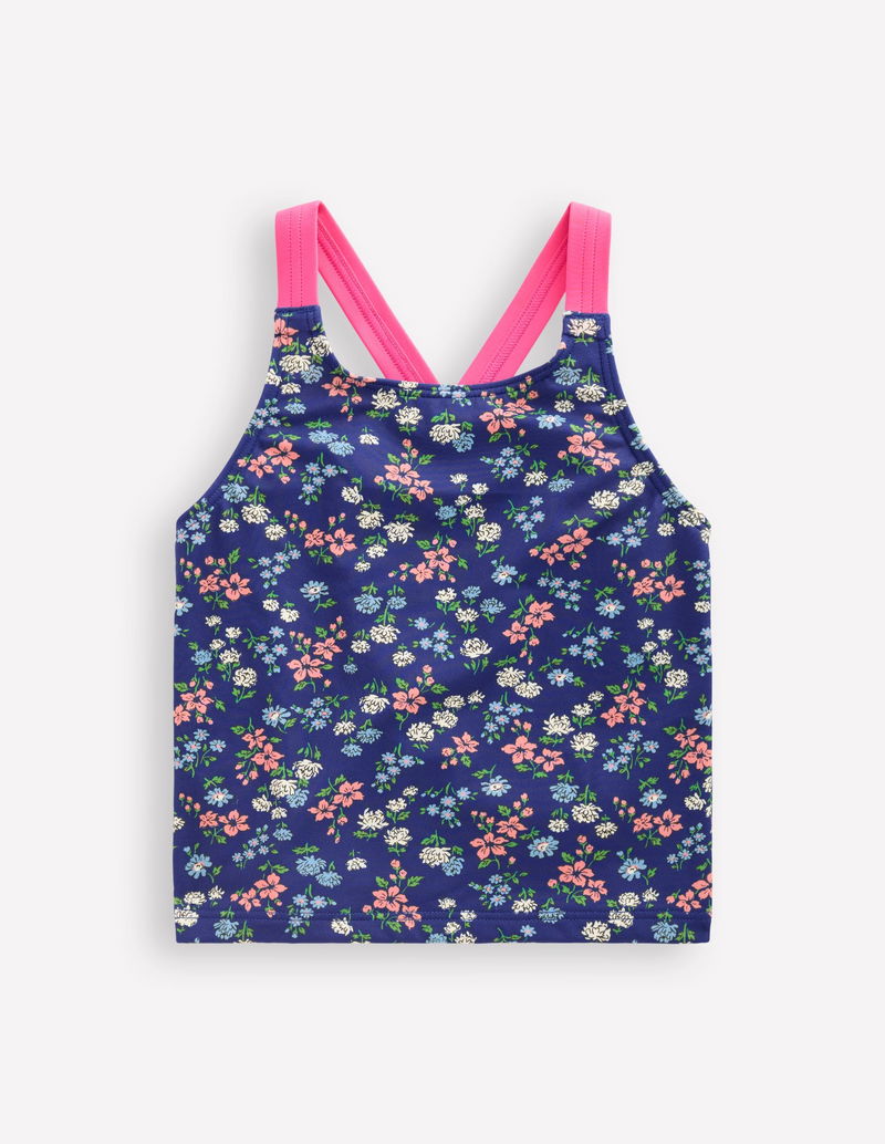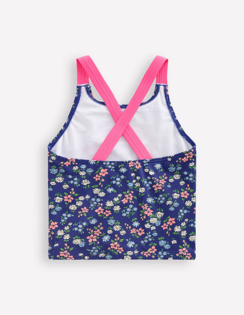 Cross-Back Tankini Top-Sapphire Blue Meadow Floral