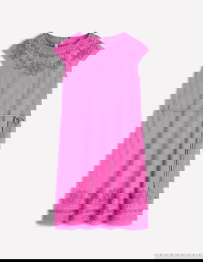 Need a solution to update your everyday look? Try this cutwork dress. It has lots of lovely detail, of course, and it's T-shirt shaped, so you can wear it cinched or loose to suit your mood.