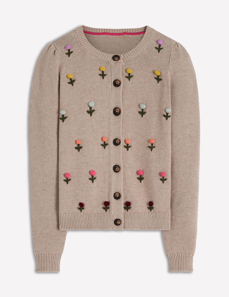 Davina Puff Sleeve Cardigan-Chinchilla Embroidery