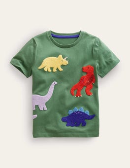 We could just say "dinosaurs" and leave it at that, but we'll also tell you that this soft cotton tee features textured bouclé motifs of everyone's favourite reptile.