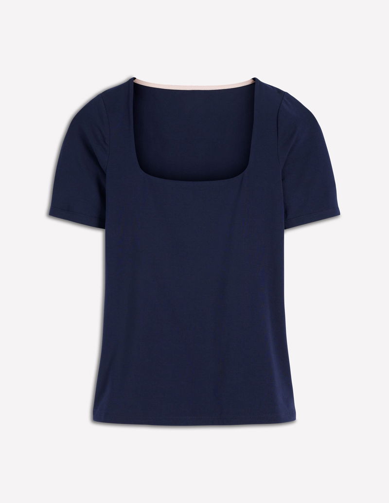 Double Layer Square Neck Tee-Navy