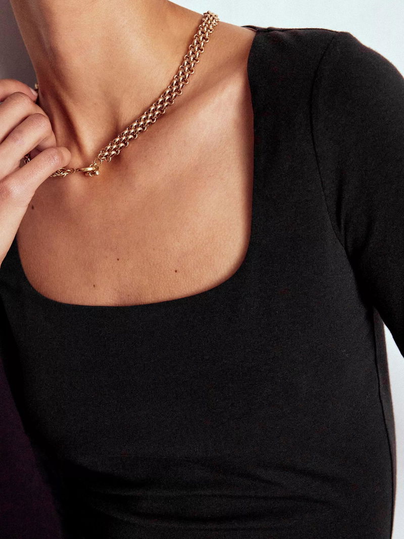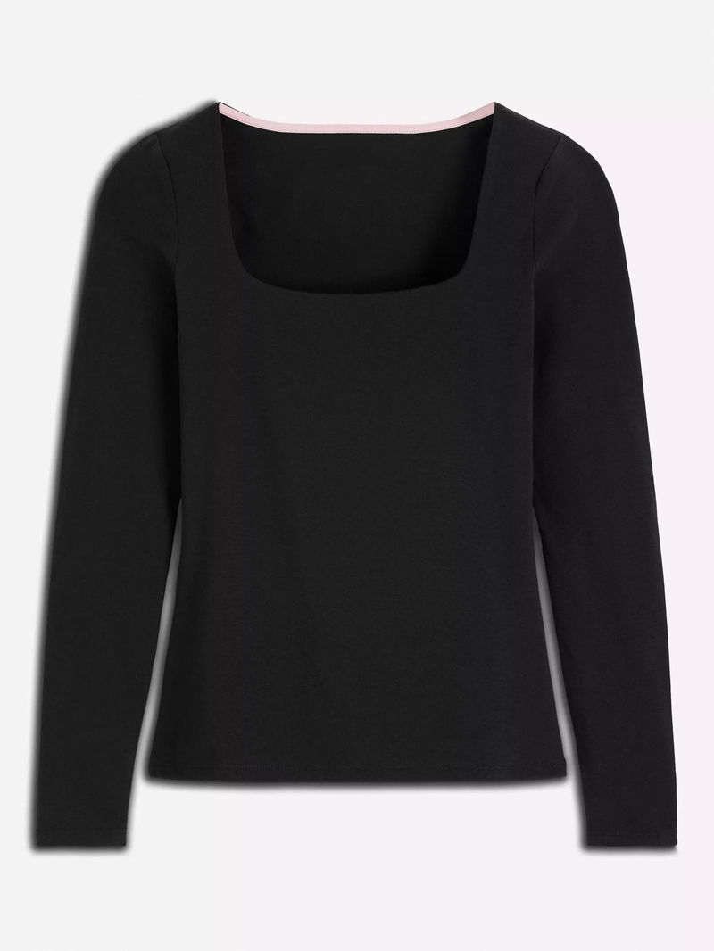 Double Layer Square Neck Top, Black