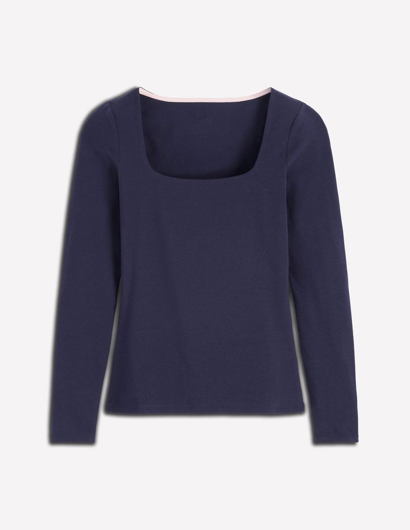 Double Layer Square Neck Top-Navy