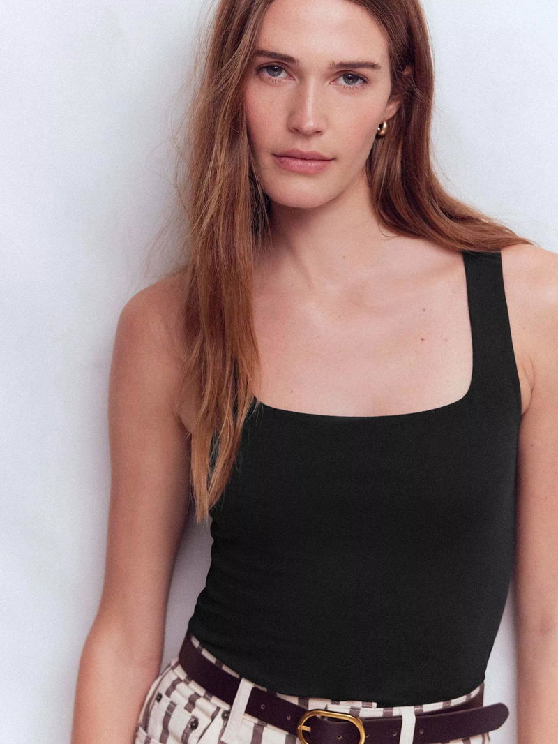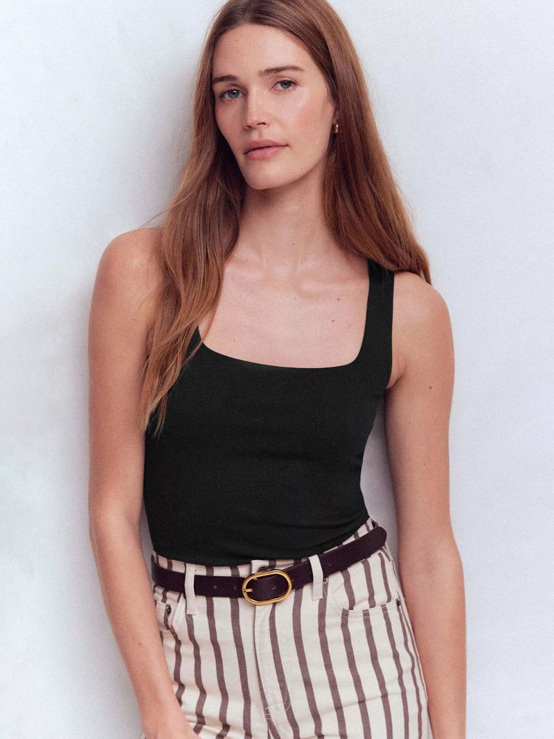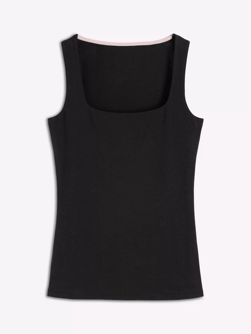 Double Layer Square Neck Vest Top, Black