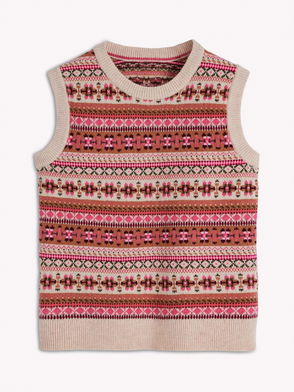 Edie Fair Isle Fruit Wool Blend Tank Top, Ecru