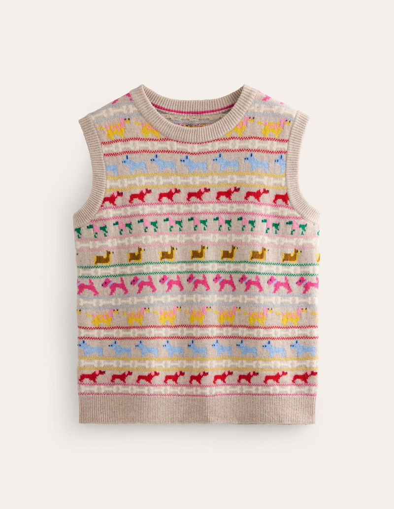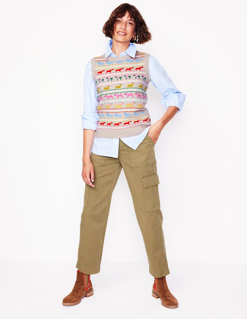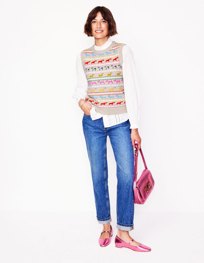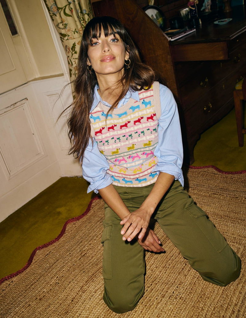 The Edie tank is back and we couldn’t be more excited. This one’s made with a cosy blend of cotton, wool and alpaca and cloaked in a heritage Fair Isle motif. Wear alone or layer over a long-sleeved T-shirt or blouse for an upbeat addition to your cold-weather wardrobe.