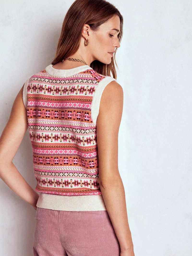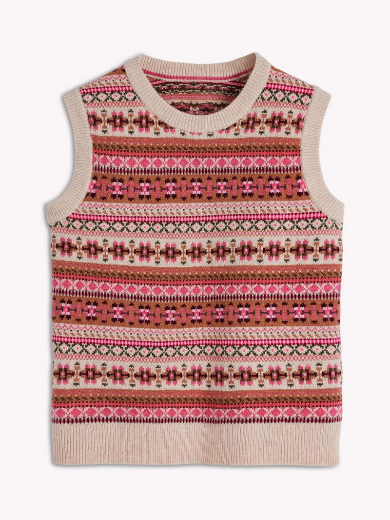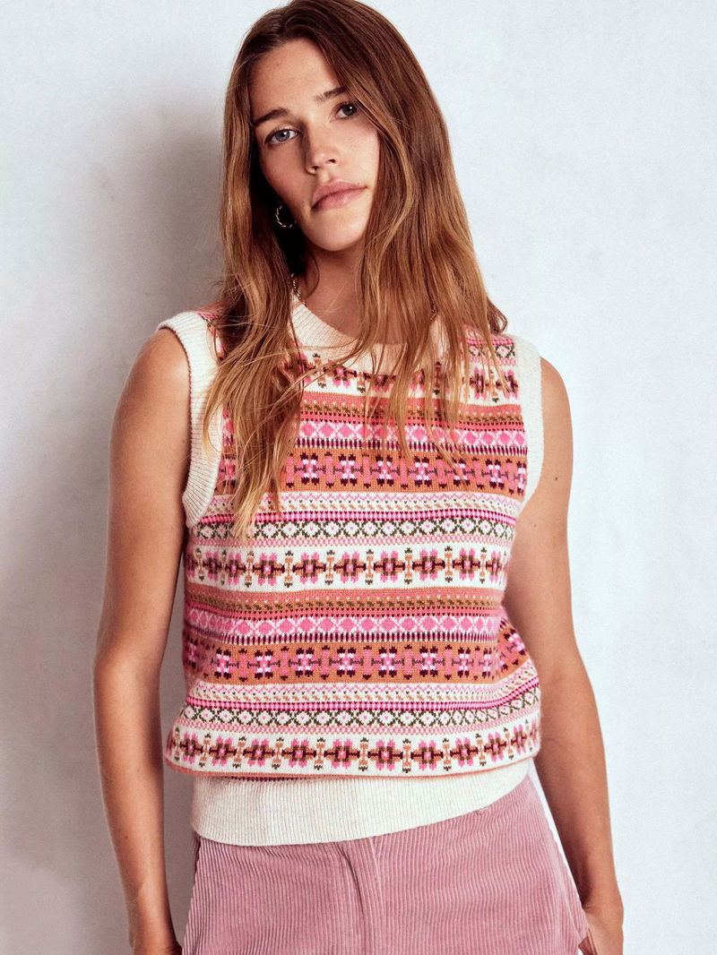 Edie Fair Isle Wool Blend Tank Top, Pink/Multi