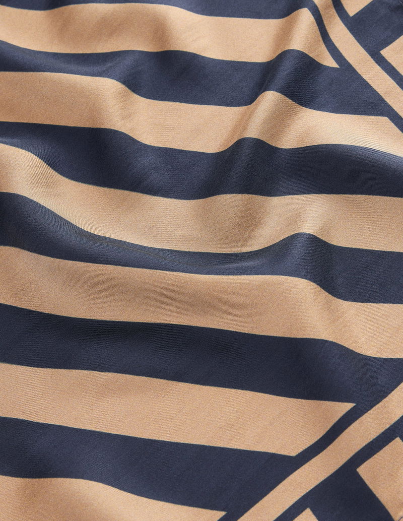 Elisabeth Silk Square Scarf-Navy And Camel Stripe