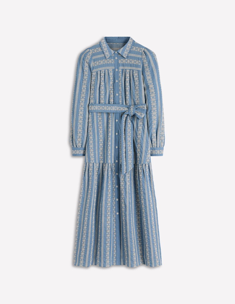 Ellie Cotton Maxi Shirt Dress-Broderie Denim