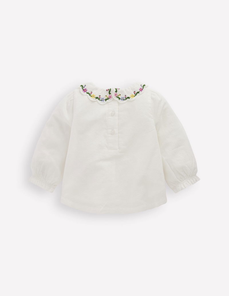 Embroidered Collar Woven Top-Soft Ivory Embroidery