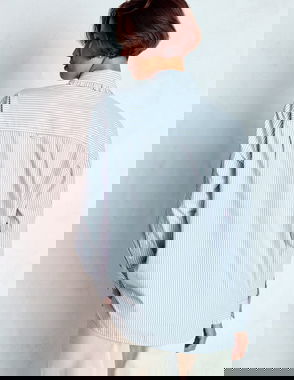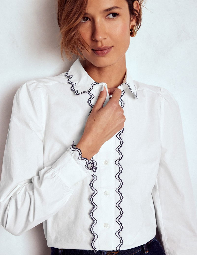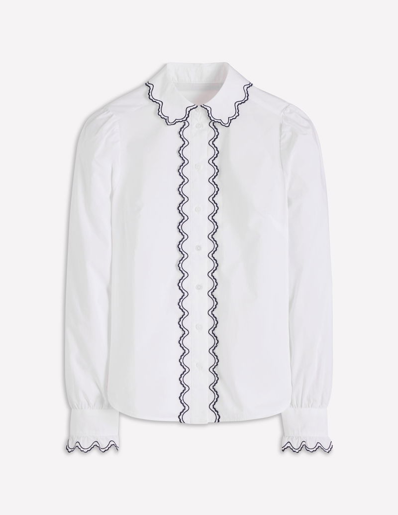 Embroidered Cotton Shirt-White, Navy Embroidery