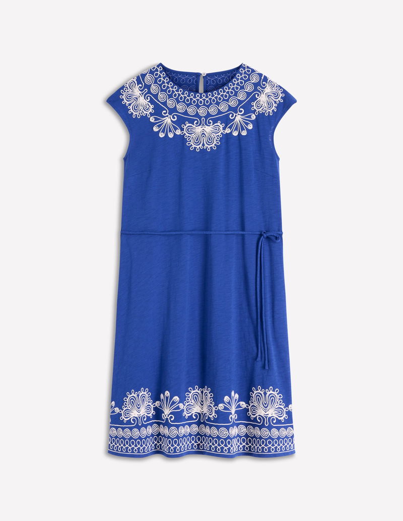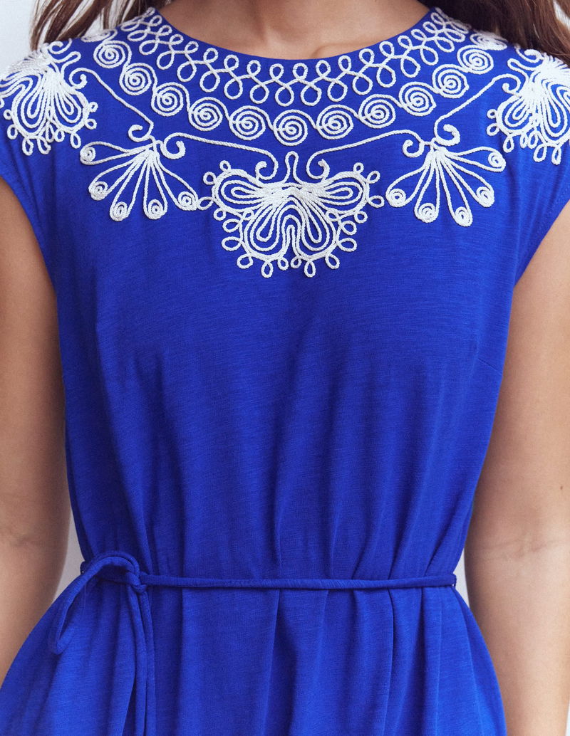 Embroidered Jersey Short Dress-Bright Blue