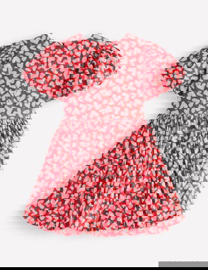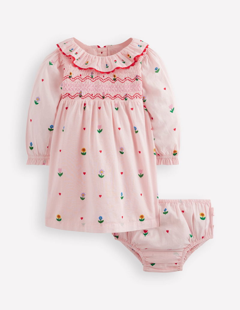 Embroidered Smocked Dress-Pink Multi Floral Heart Flower
