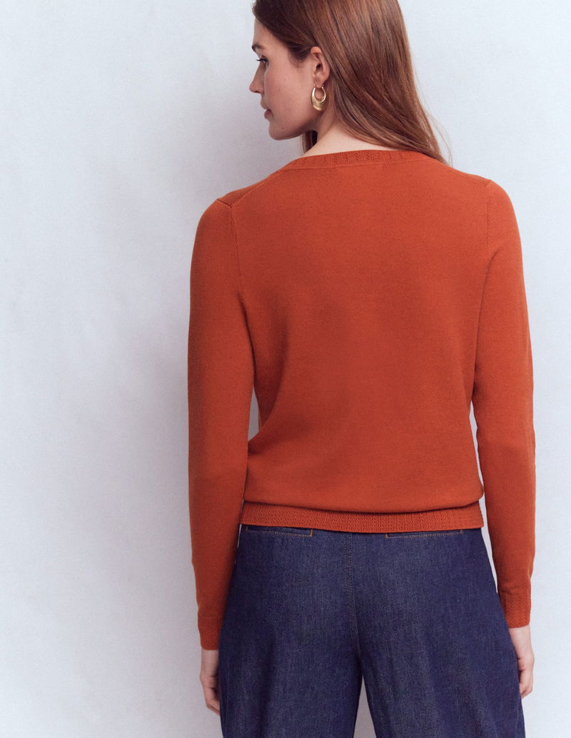 Emilia Cotton Crew Cardigan-Roasted Chestnut Brown