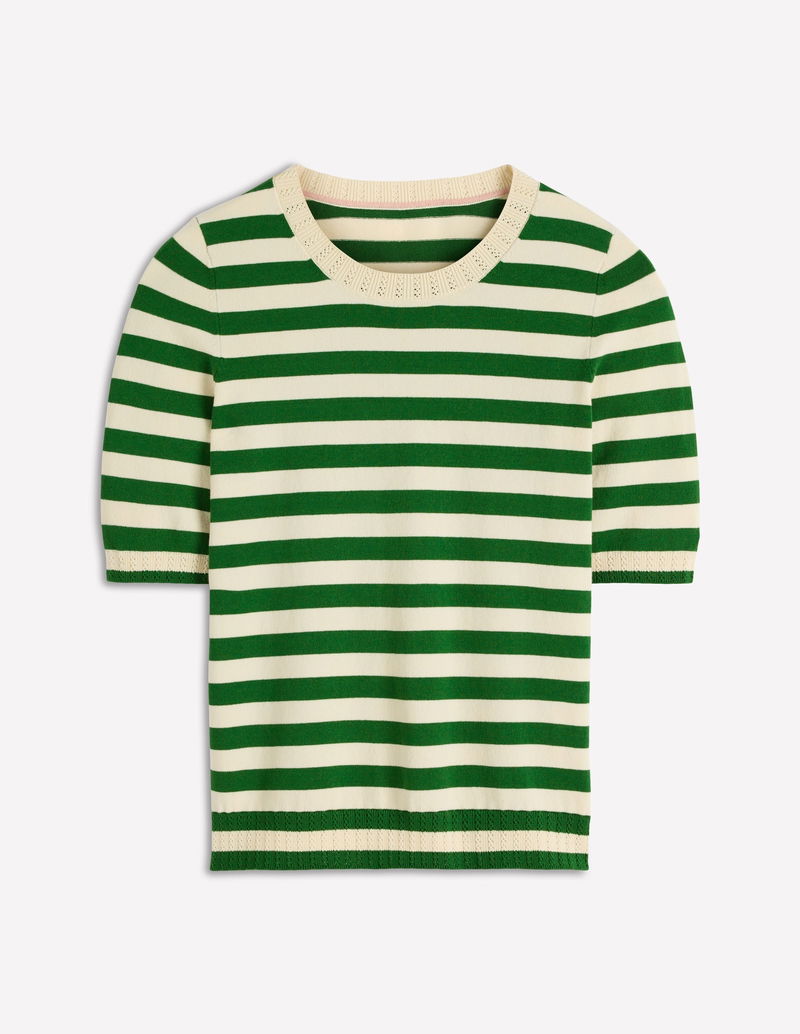Emilia Cotton Crew T-shirt-Promenade Green/ Ivory Stripe