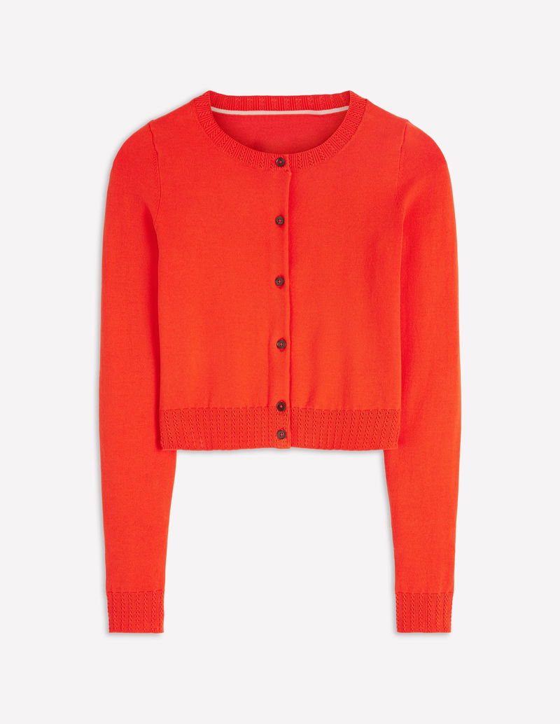 Emilia Cotton Cropped Cardigan-Sunset Orange