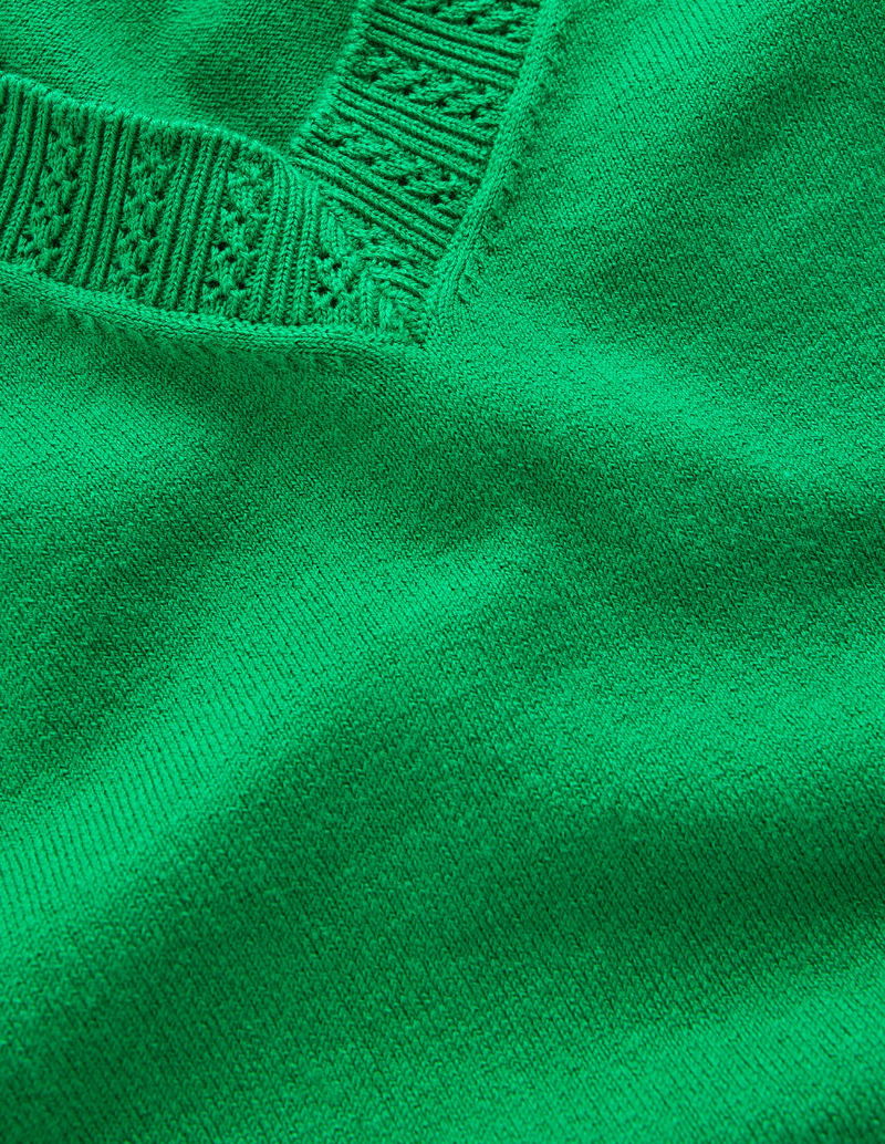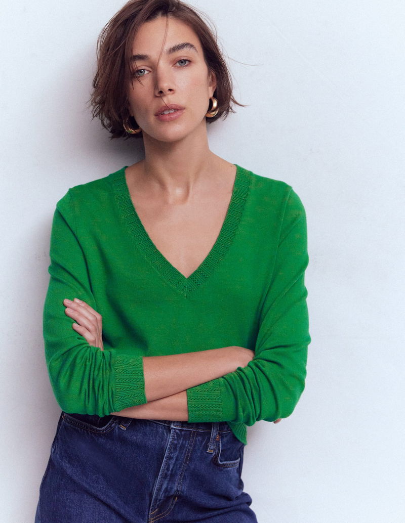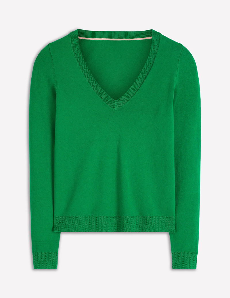 Emilia Cotton V-Neck Jumper-Rich Emerald