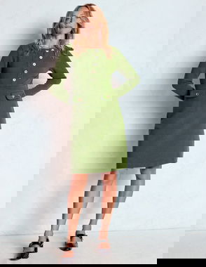 Empire Waistline Shirt Dress-Red, Ornate Flora