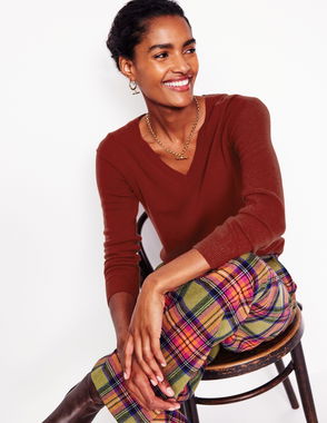 The semi-fitted Eva jumper is spun from the softest cashmere. A yarn that’s naturally warm but breathable, it makes the perfect layer for dresses and tees. Pick your favourite colour and see for yourself…